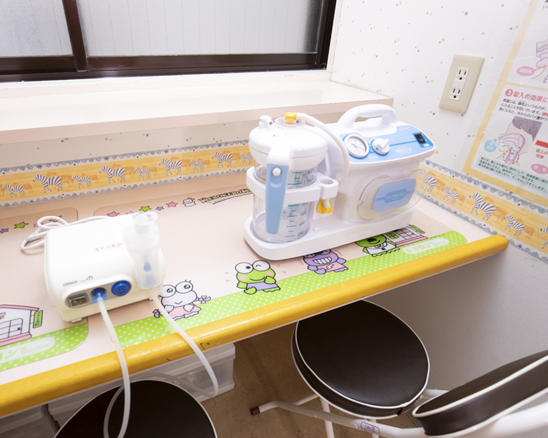 多数を常備しています。院内で使用する他、貸出も可能です。現在コロナ感染流行中のため、院内の吸入は中止しています。気管支炎、肺炎、気管支喘息など、咳や喘鳴が長期に続くときに使用します。