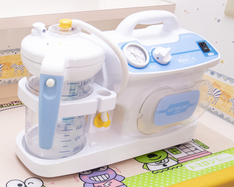 鼻が傷つきにくい方法で吸引しています。現在コロナ感染流行中のため、院内の吸引は中止しています。